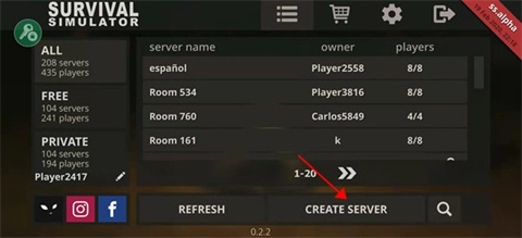 2、点击箭头图标即可自行创建房间,也能加入其他玩家的房间共同游玩。