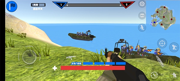 3、滑动屏幕左侧的轮盘来控制移动方向,同时留意右上角的地图——红点标识着敌方位置。对抗过程中务必和队友紧密配合,保持隐蔽状态,还要随时滑动屏幕切换视角观察周边环境,只要把所有敌人都消灭干净,就能赢得这场游戏的胜利啦。