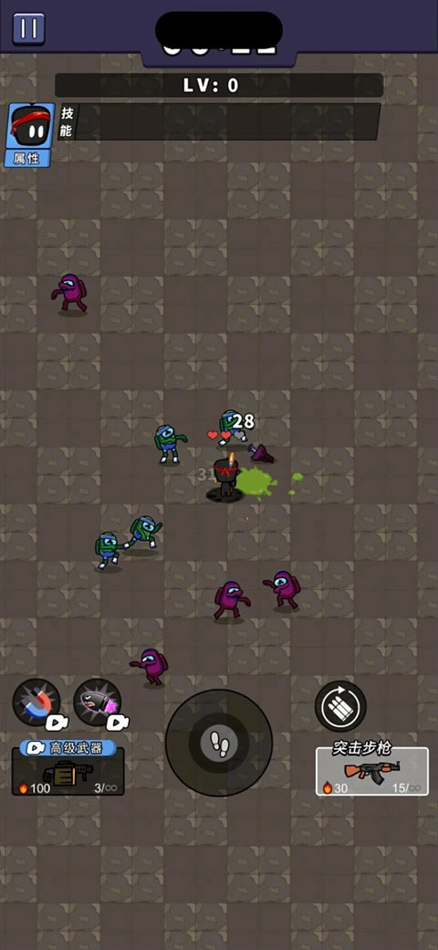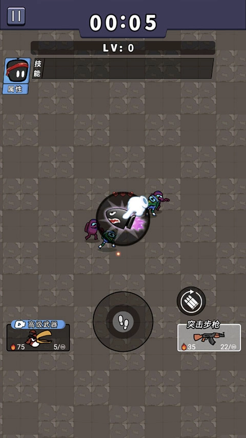 3、滑动中心按钮来躲避敌人的攻击,注意和敌人保持一定距离,英雄会自动射击,子弹也会自动刷新