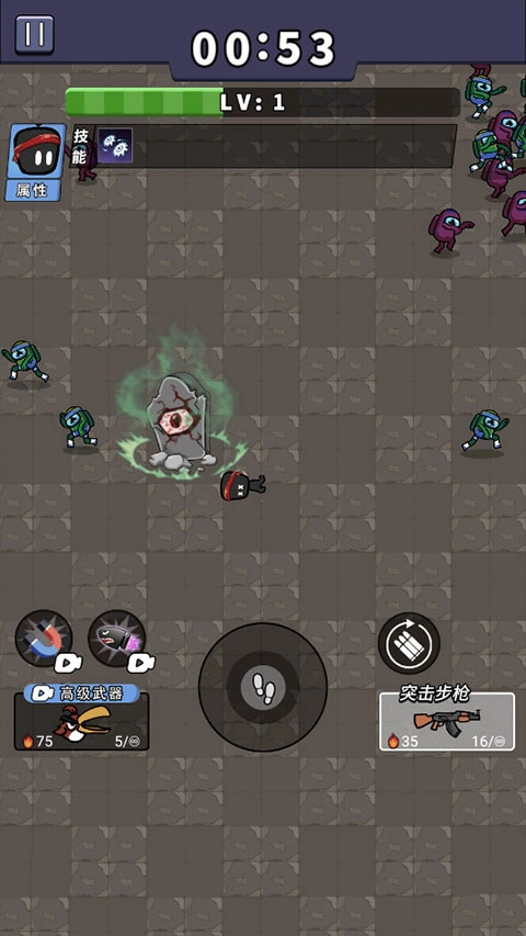 5、每击败一个敌人,场地上就会掉落经验球,靠近并拾取它就能快速提升等级;