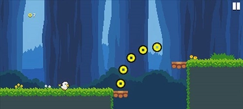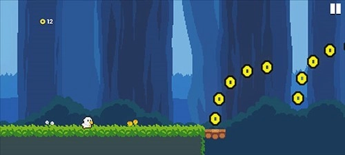 2、点击左侧可以“跳跃”,收集金币越过山谷。