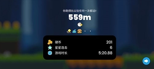 8、如果坠落或者被怪物击中,比赛就会结束,你可以看到自己的最长记录。