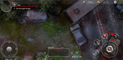3、点击屏幕中间下方的枪械图标可切换武器,右下角第一个按钮用于更换弹匣,第二个按钮则可触发手雷轰炸。