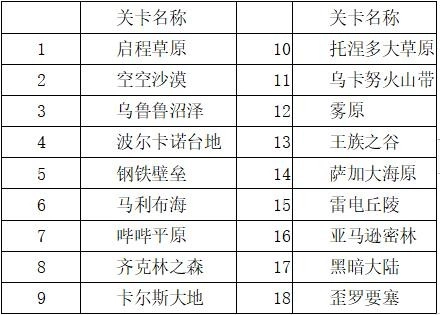 游戏内一共有18个关卡哦~关卡名字如下图所示,期待小伙伴们进入游戏后积极探索~