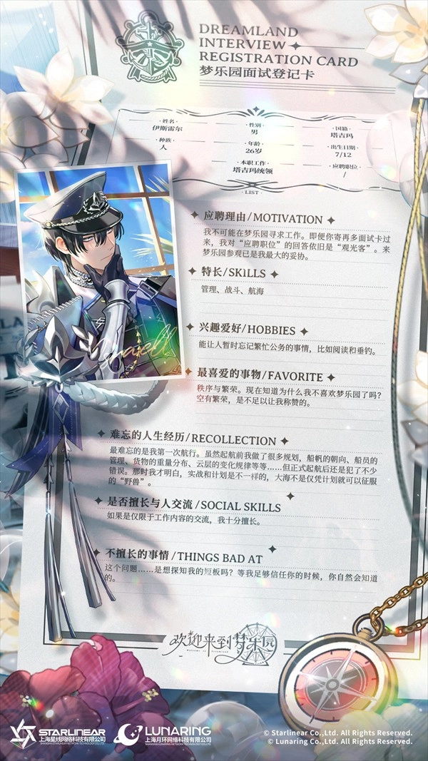 伊斯雷尔是个雷厉风行的执行者,平日里不苟言笑。他曾是海上令人闻风丧胆的海军统领,却因过于严厉、性格刻板强硬,始终没有交到朋友。