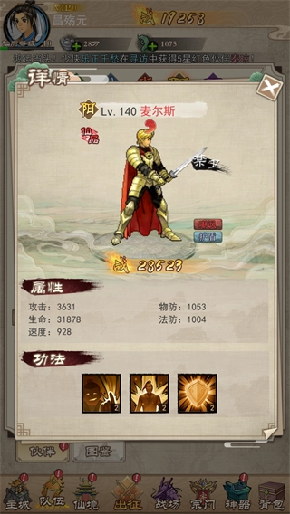这是一位物理攻击定位的4星神将,他的生命值与物理防御属性处于中游水平,既不算突出也不至于薄弱。该神将具备攻击一排敌人的能力,输出伤害可观,同时还能附加封怒、减伤、降低敌方防御与闪避等辅助效果。不过其短板也较为明显,法力防御属性偏低,在面对高法术伤害时生存能力不足。
