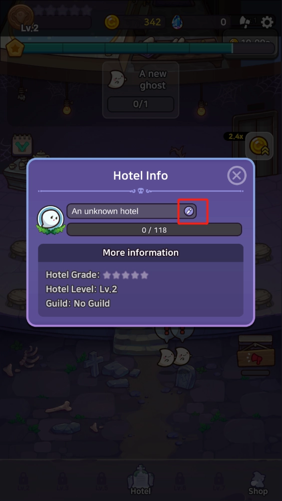 3、在此你可以更换自己喜欢的酒店名字啦