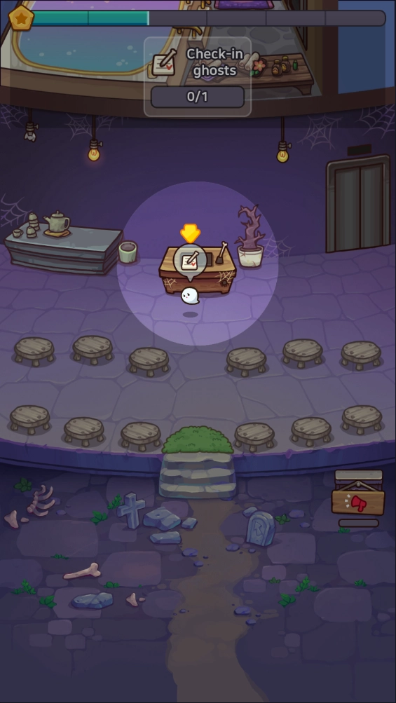 8、为小幽灵提供完服务后,点击柜子后方的小瓶子,就能拿到客人留下的小费了。
