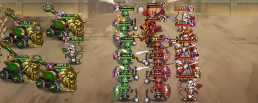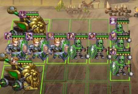这个阵型的实用性很广泛,不仅适用于攻城战,在单挑战斗和竞技场战斗中也能派上用场——它能帮助你在一定程度上战胜那些战力比你强的常规阵容对手。