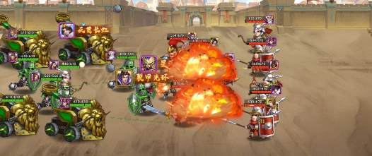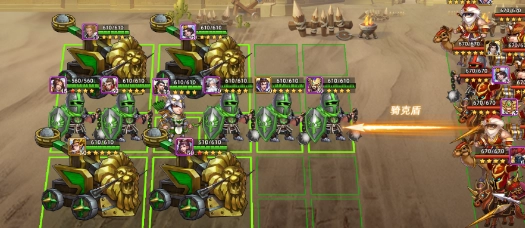 攻城战斗正常阵型就是五个前排,甚至六个前排,后排输出有战车就可以,如果没有战车就选择射程远一些的弓或者弩。输出不要靠前排太近,以免被对方技能波及。