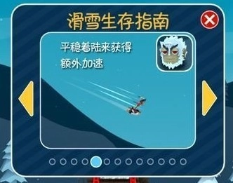 当从高空坠落的时候,可以尝试多来几个后空翻。可以骑着企鹅,雪人等等道具一起后空翻,可加分的哦。不过在着落的时候要掌握好距离平稳陆地。但是当雪崩追得很紧的情况下,就千万不要后空翻了,失败一次就必死无疑,尽量采用下坠加速的方式。