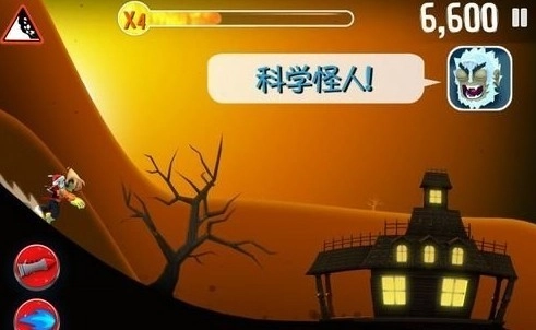 这游戏中,考验的就是玩家的反应能力,要迅速敏捷的避开雪地上的大小石头、冰凌、南瓜等,如果不小心碰到障碍物,会使得主角摔倒及降低速度。记得摔倒后要狂点屏幕爬起来,因为要在雪崩来临之前跑出高分!