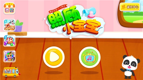 2、点击左侧的“播放”图标,即可进入照顾小宝宝的界面,在该界面中,你可以进行哄宝宝入睡、给小宝宝喂奶、逗宝宝开心等操作。