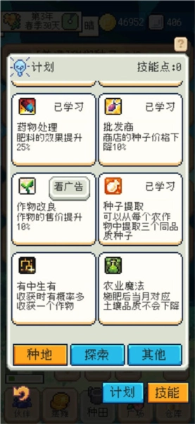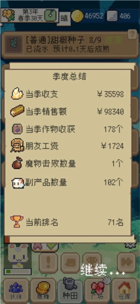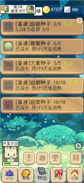 67种作物花样种植,除了要根据季节来种植,还需要管理土地的状态来培养更优秀的品种。