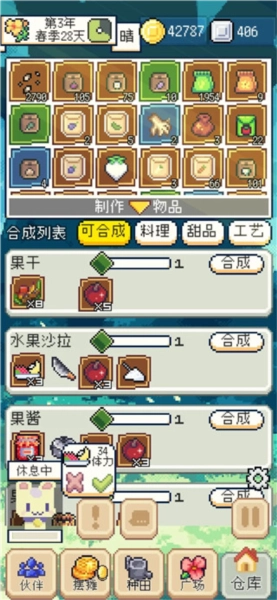 点击仓库按键,点击“制作物品”就能合成你心仪的物品了