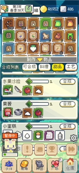 120种食谱和配方待发掘,将作物、动物的产出物和探索得来的材料加工成各种商品并且进行售卖。