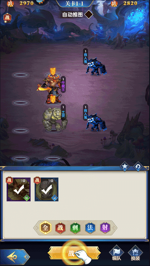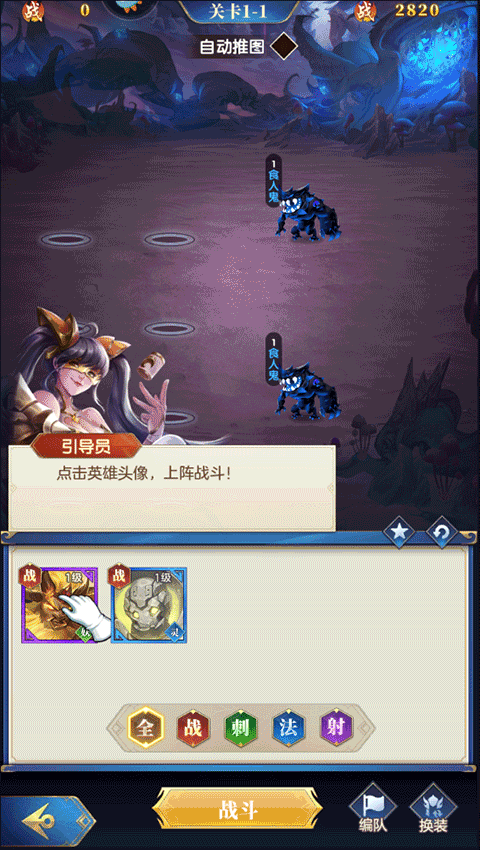 5、最后点击战斗,战斗即将开始,随着游戏的不断前进,玩家获得的新英雄也将不断出现;
