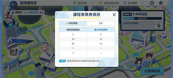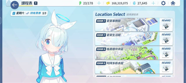 不仅如此,通过安排课程还可以获得对应区域的经验以提高区域Rank等级来解锁更多的地点,获得更高级的素材。随着Rank等级的提高还会增加奖励概率,提高票券上限。