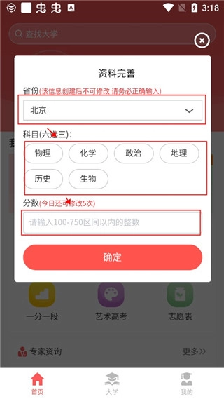 3、在软件的主页面有:找大学、查专业、一分一段等;