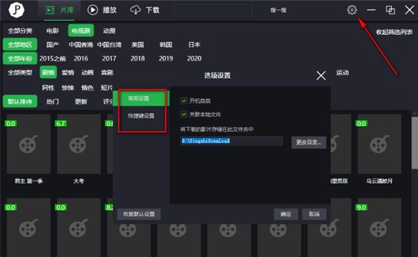 5. 与此同时,你只需点击右上角的设置图标,点击之后,就能在该窗口中更改路径,并对快捷键进行设置。