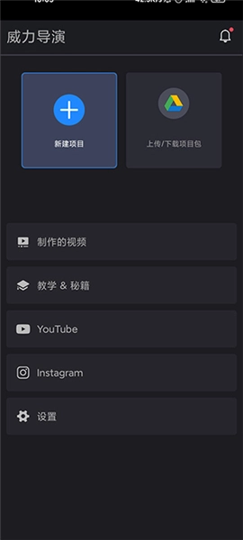 2、在首页当中,用户可以创建视频、查看教程、上传项目包等;