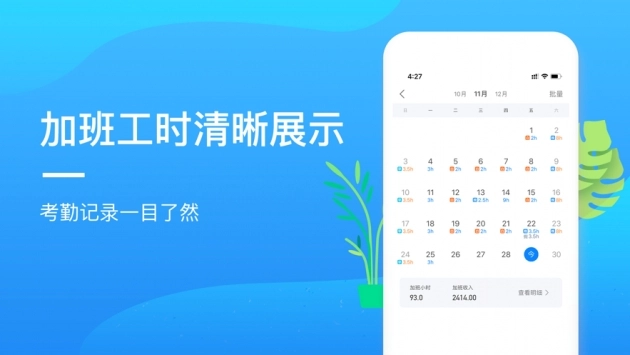 2、记录加班时间后,帮您自动计算加班工资及当月总工资;