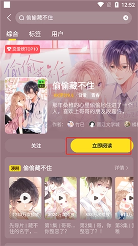 2. 寻找到自己想看的漫画后,点击“立即阅读”。