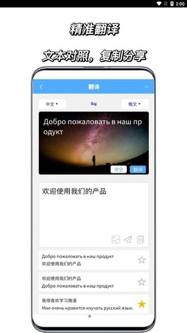 2. 借助高品质的语音识别与语音合成技术,能够迅速且精准地翻译俄语。