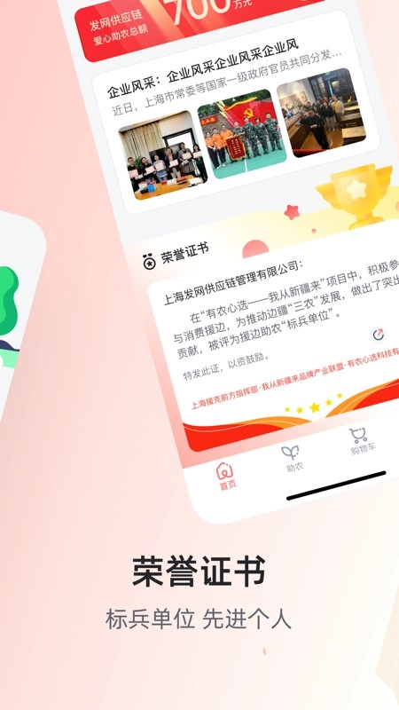 有农心选,这是一款专注于助力新疆、云南等边远地区农产品销售的产品。它打通了农产品从西部边远地区到东部的销售通道,与此同时,还满足了企业的采购需求。