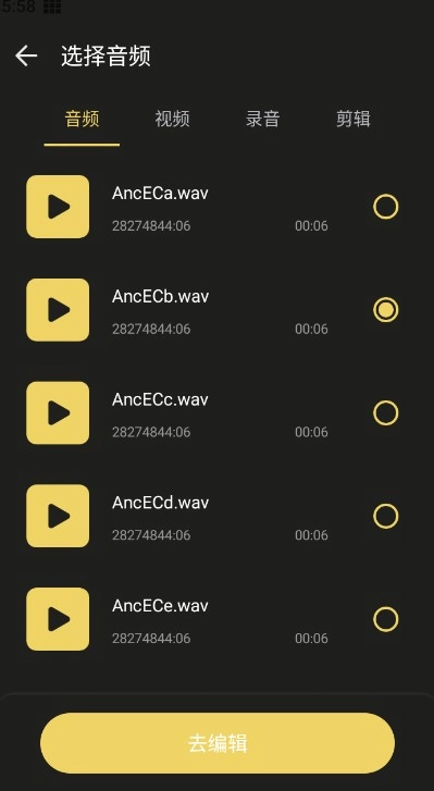2、点击音乐拼接,选择自己需要拼接的曲目。