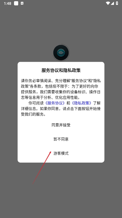 1. 在本站安装小河音效助手,安装完成后打开,选择点击使用游客模式。