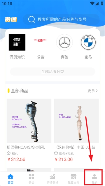 首先安装贵通三元催化,安装完成后打开该应用。待进入首页界面,接着点击“我的”选项。