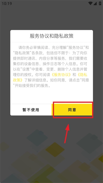 点击同意服务协议和隐私政策