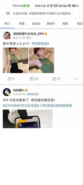 4、浏览热门话题、资讯以及热搜内容。