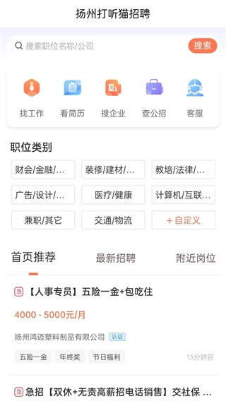 1. 找工作模式马上启动,这是专门为扬州本地求职者打造的。