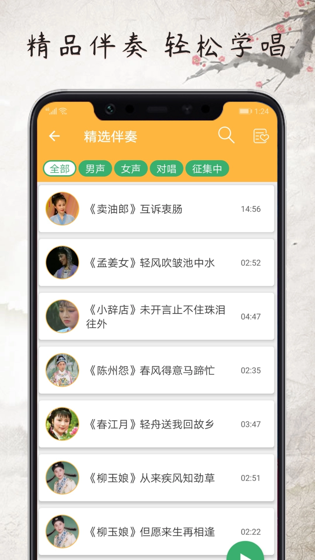 想听《天仙配》《女驸马》《小辞店》《桃花扇》《孟姜女》《牛郎织女》《夫妻观灯》《春香闹学》《徽州女人》等经典唱段,随时都能听。