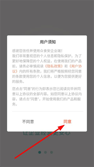 1、在用户须知弹窗中,点击同意,进入登录页面。