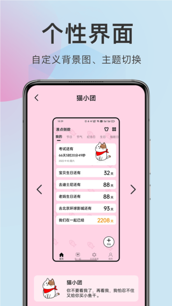 不会遗漏重要日子,在软件上对各类纪念日进行倒数计时,每个重要日子都铭记于心,还会设置到时提醒等。