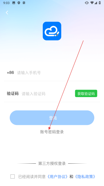4、在账号密码登录界面,输入【请输入账号和密码,勾选协议】后点击【登陆】,即可完成账号登录。