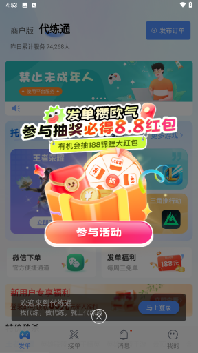 代练通是一个安全的游戏代练交易平台,通过高效便捷的方式连接游戏高玩与普通玩家,实现了游戏爱好者们随时随地可进行技能变现,电竞教学,安全代练等。在代练通,你可以直接发布订单找到大神本尊帮你完成,直面代练大神,每笔订单物有所值,拒绝重重压价,避免额外花费。在代练通,你可以在海量的代练订单中,寻找到自己中意的高价代练订单,接取有把握的代练任务,提供安全可靠的交易环境,让你每一分努力都有所回报。