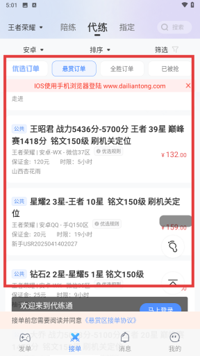 1、进入代练通之后,点击下方的“接单”。