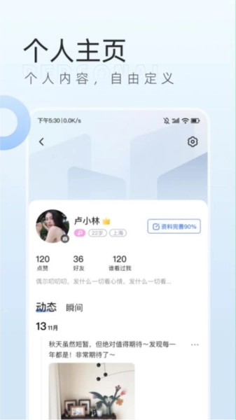 3.自由定义:用户可以根据自己的喜好定制个人主页,展示个性。