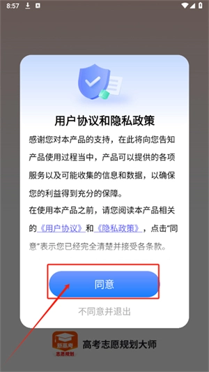 2、打开进入软件,点击同意隐私政策