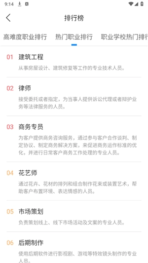 4、于职业排行页面,能够查看各类热门职业与高难度专业的排行信息,助力更优地选择职业。
