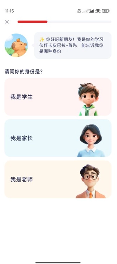 3. 接下来挑选身份,可从学生、家长、老师中选择。