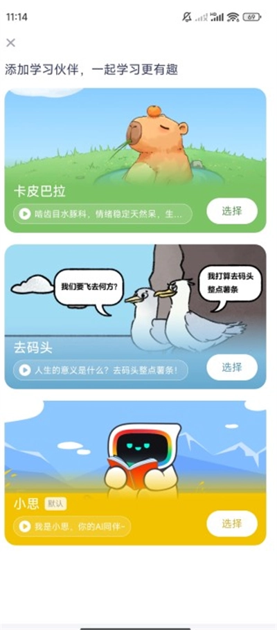 2.添加学习伙伴,包括卡皮巴拉、去码头、小思等