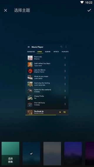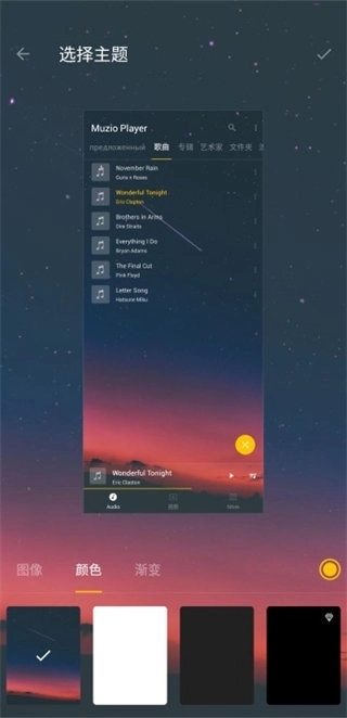 首次启动时,您可以通过系统提供的数十种精美主题来定制播放器外观,满足个性化需求。如果对默认主题不满意,还可以从手机相册中选择图片作为背景,并搭配多种颜色选项,打造独一无二的音乐体验。