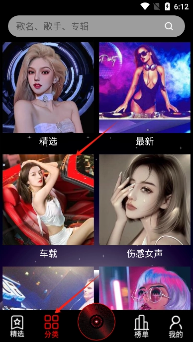 2、点击下方分类,所有歌曲都已进行详细分类。