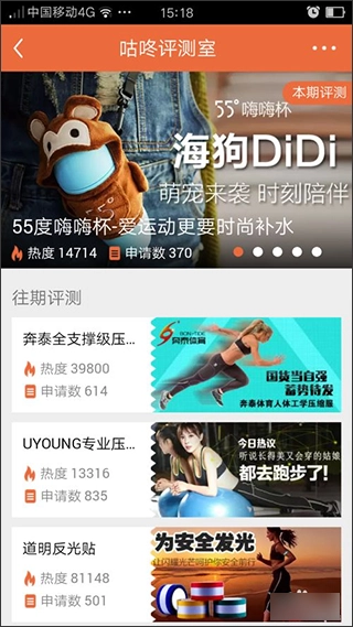 4、那么在设置好这两项后,我们基本上是可以尝试开始运动了,但是我还是建议朋友先多了解一下软件的其他方面,比如说在软件主界面中有一个咕咚评测室,里面有我们所需的各种锻炼物资进行提供,但是提供的名额有限,所以我们在闲暇的时候可以多点进去看一下是否能抢到自己所需的锻炼物资。