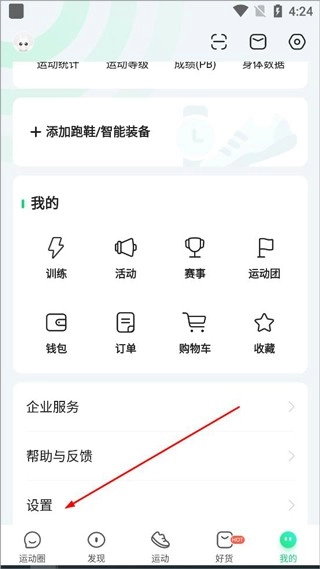 1. 开启咕咚应用,轻点界面下方“我的”选项,随后打开设置功能。